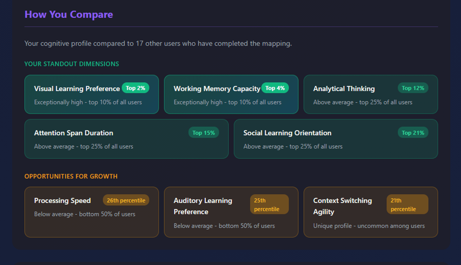 Within 6-12 Months: - 25-40% improvement in AI tool adoption rates (based on early customer data) - Reduced training costs through targeted interventions (not blanket programs) - Team analytics showing cognitive complementarity for project assignments - Quantified ROI on AI software investments (who's actually using effectively?)